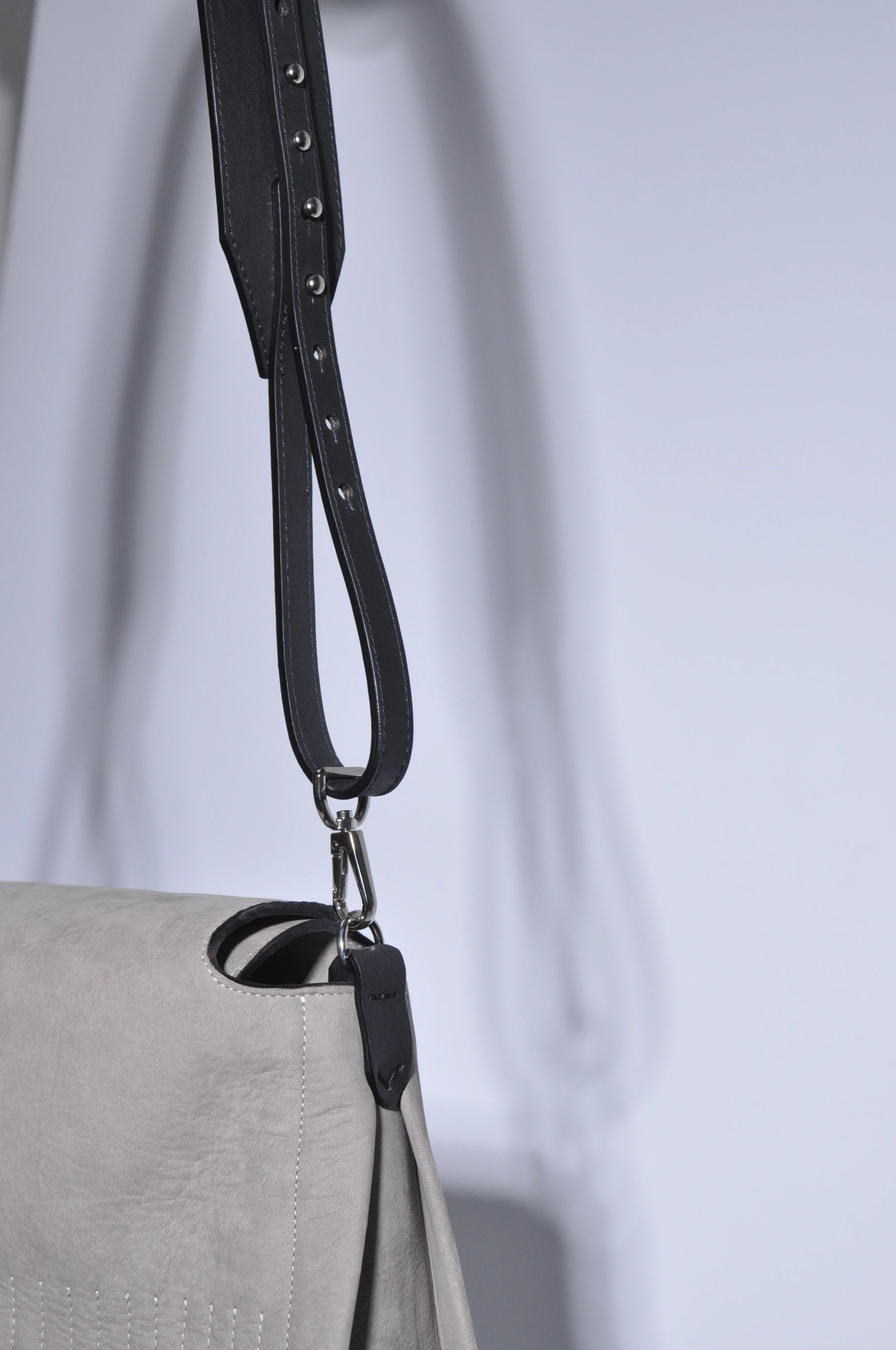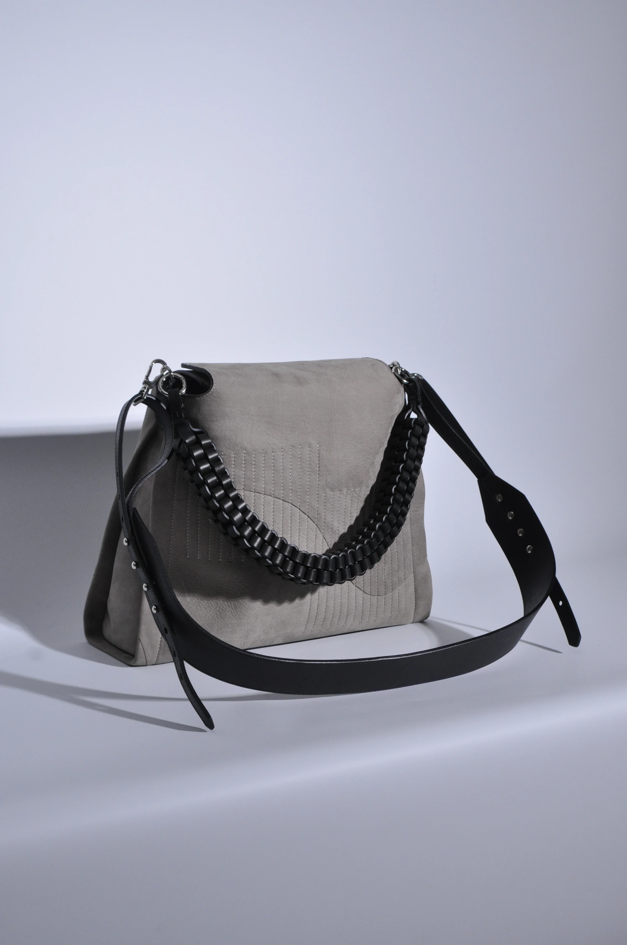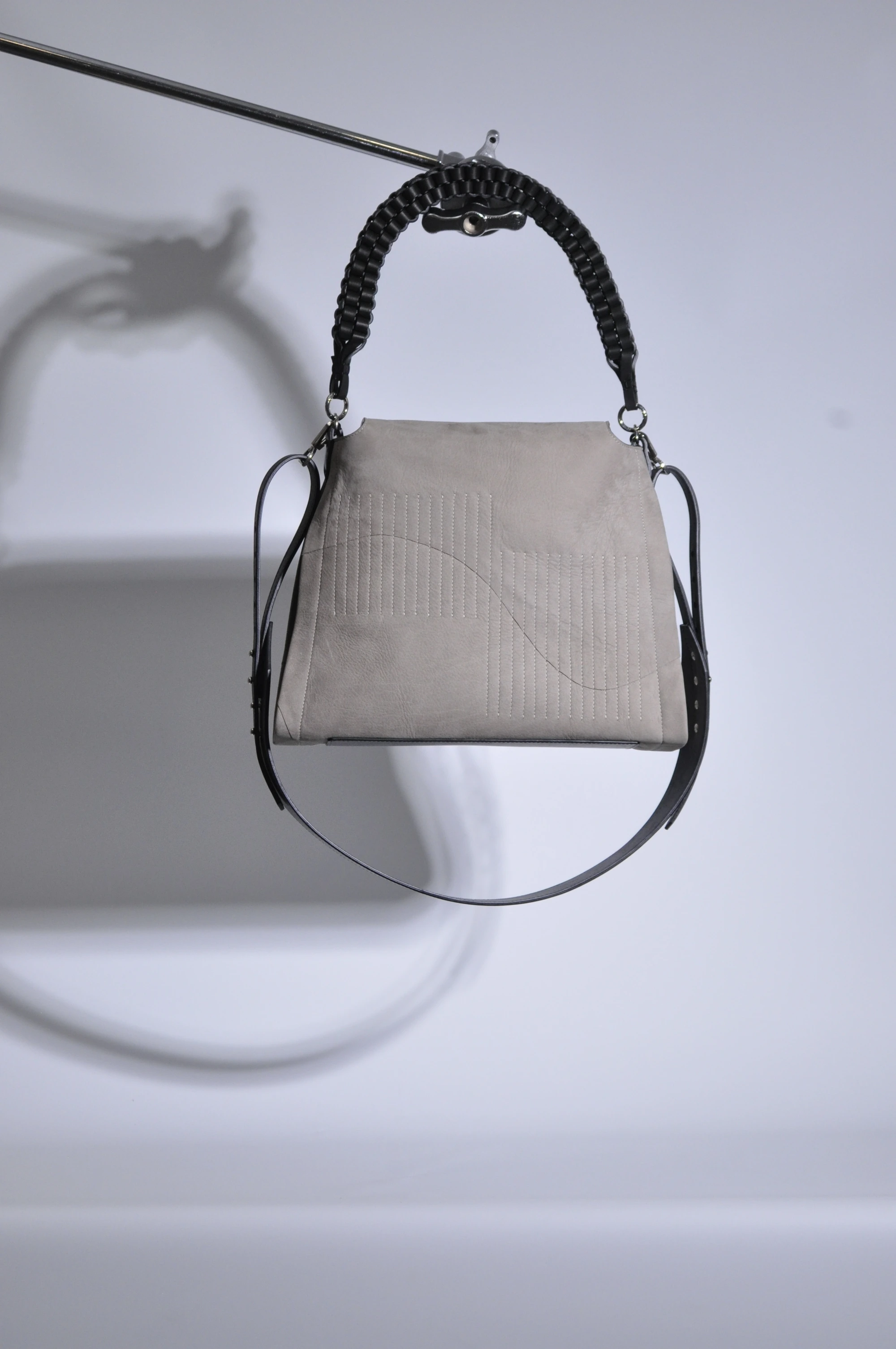 A kollekció jellegzetes felületi játékával, mintájával készült válltáska. A szabásminta olyan módon lett kialakítva, hogy az anyag maximálisan fel legyen használva. Így minimalizálva a hulladékot a Sand Garden táskák fenntartható módon készülnek.