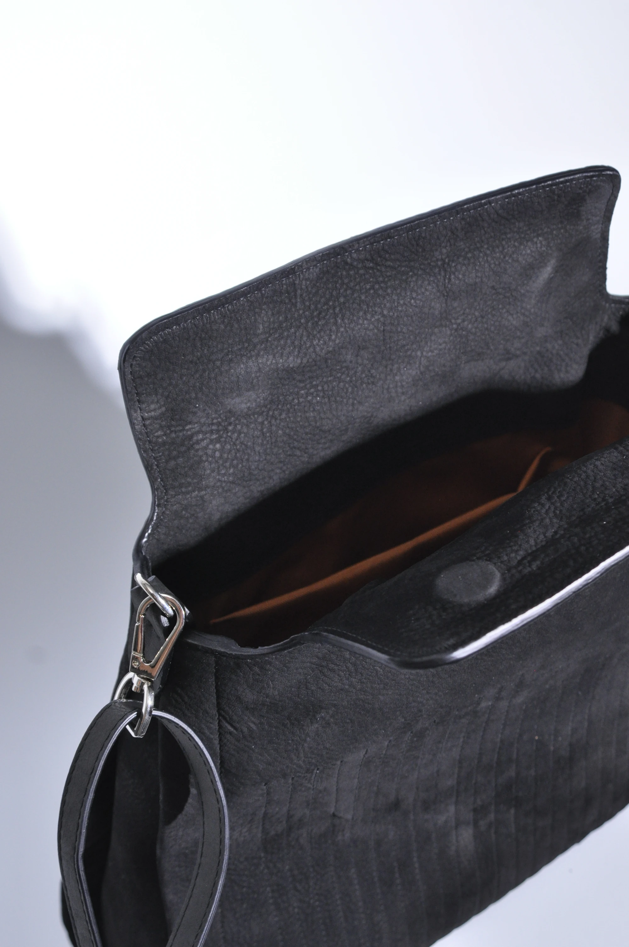 A kollekció jellegzetes felületi játékával, mintájával készült válltáska. A szabásminta olyan módon lett kialakítva, hogy az anyag maximálisan fel legyen használva. Így minimalizálva a hulladékot a Sand Garden táskák fenntartható módon készülnek.