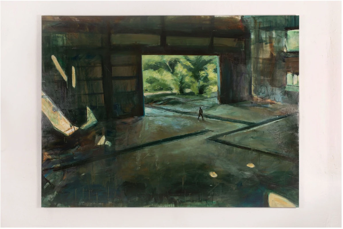 Az EXIT című festmény az egyik legimpozánsabb darabja az ipari tereket ábrázoló ciklusnak. Mély tónusaival, és teljes látómezőt kitöltő méreteivel erőt sugároz, ugyanakkor finom fényekkel, és festői megoldásokkal dolgozik. Drámai, és egyben filozófikus mű, amelyhez súlyos betonfalak és a szabad levegő kontrasztja adott inspirációt.